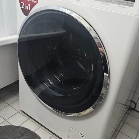 LG ( LG F4Y5VRP6WY) kombinerad tvättmaskin och torktumlare i vitt. Frontmatad modell med digital display och flera programval för tvätt och torkning. Anpassad för effektiv tvätt och torkning i ett och samma maskin.