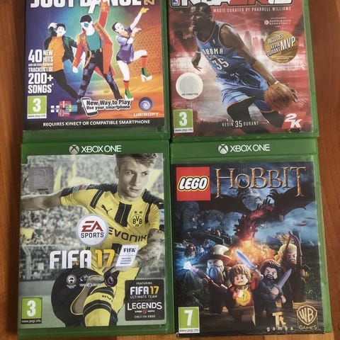 EA Sports FIFA 17 Xbox One spel med fotbollstema. Gears of War 4 Xbox One spel med action och äventyr. Battlefield 1 Xbox One spel med krigstema. Alla spel är för Xbox One-konsolen och har olika åldersgränser enligt märkning.
