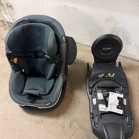 Barnsäkerhetsstol med vridbar funktion för enkel åtkomst. Utrustad med fempunktssele och stabil bas med stödben för ökad säkerhet. Passar för barn up till 3år.