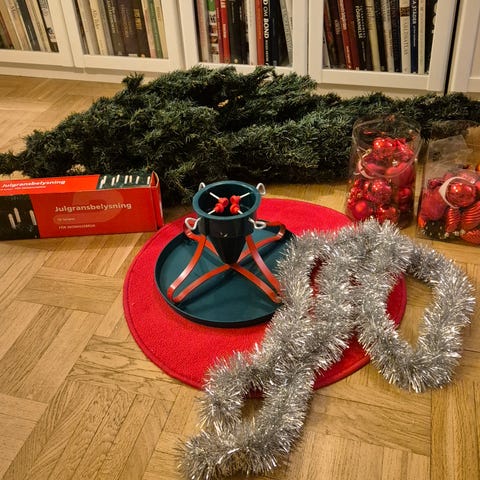 Har även julkulor , julstjärna för att sätta upp på julgrans topp, belysning och mycket annat