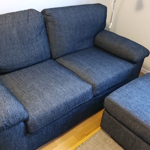 Snygg grå sittpuff med bra förvaring. Säljes pga flytt.