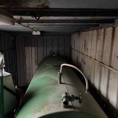 Dieselpump med integrerad mätare och slang för påfyllning av diesel. Utrustad med handtag och slangvindare. Kom med bud