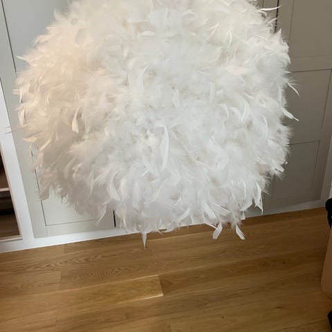 Säljer ett mycket vackert och stämningsfullt fjäderlampa-set i äkta vita fjädrar, bestående av: