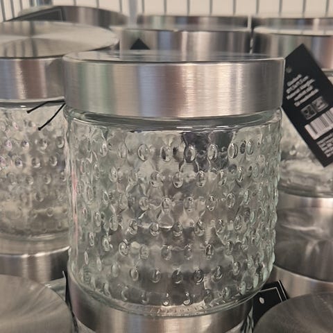 Stilren ishink i rostfritt stål med lock, sil och tång.