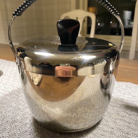 Iskylare tillverkad i trä med inre insats i metall och mässingsdetaljer. Utrustad med handtag på sidorna för enkel hantering.
