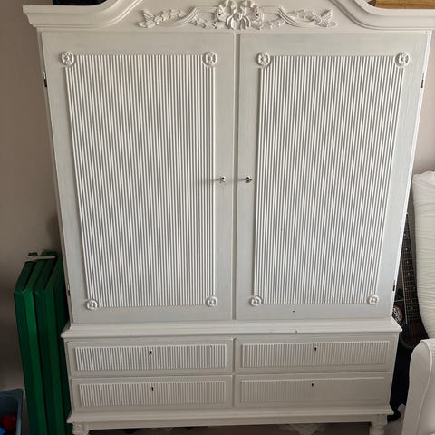 Fint och rymligt skåp som fungerar i alla rum. Fem hyllplan och flera krokar att hänga ex kläder på. Står tyvärr på vind nu efter flytt och får ej plats i ny bostad.