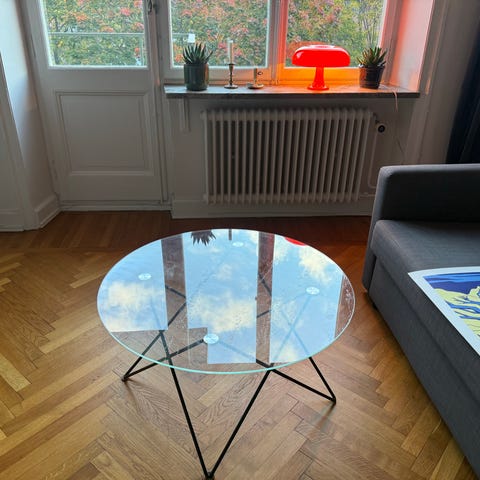 Fint bord i mycket sänkt pris pga brådska och skada i glaset (se bild). Hämtas senast fredag 19 december. Kan eventuellt sparas mot swish i förskott.