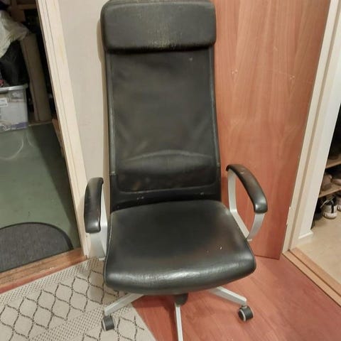 Jag säljer här två justerbara stolar för kontor eller kök. De är i mycket gott skick och tyget är tvättbart. Tyska kvalitetsstolar från HÜLSA!