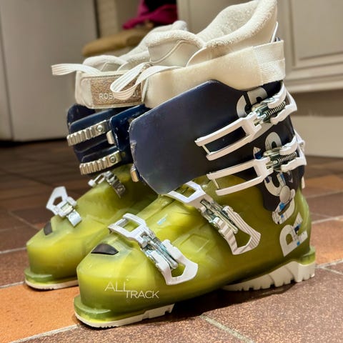Salomon slalompjäxor i fint skick, bara använda en säsong. Varma och sköna. (Lite dammiga på fotot - förlåt -har stått på vintern sedan två säsonger tillbaka...)
