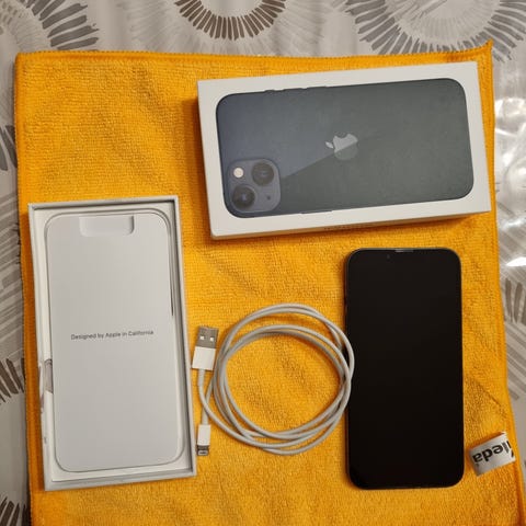 Apple iPhone 13 med 128 GB lagringskapacitet. Telefonen är svart och levereras med flera olika mobilskal, ingen låda och ingen laddare/kabel. Fungerar som den ska.