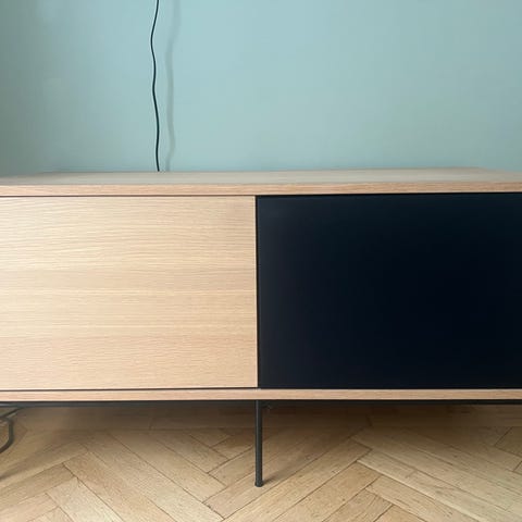 Två stycken identiska TV-bänkar från Beliani. Modell är Toledo valnöt 120 cm. Vi har haft två bänkar till vår 65-tumstv.