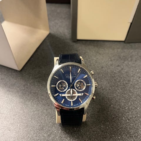 En fin klocka med instruktionsbok och extra länkar sprintar