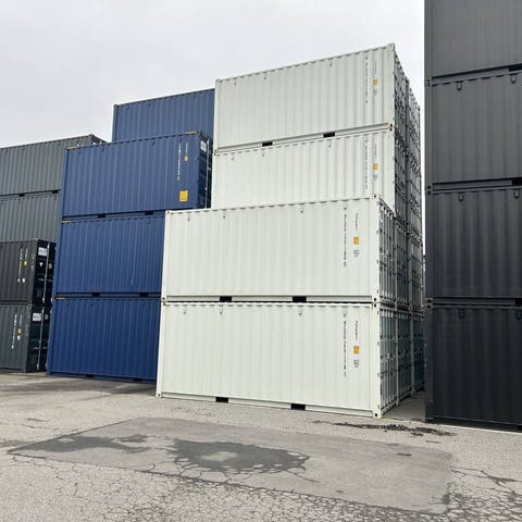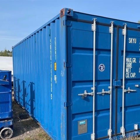 Containern är fylld med formstag för att montera Thermomur till en källargrund.