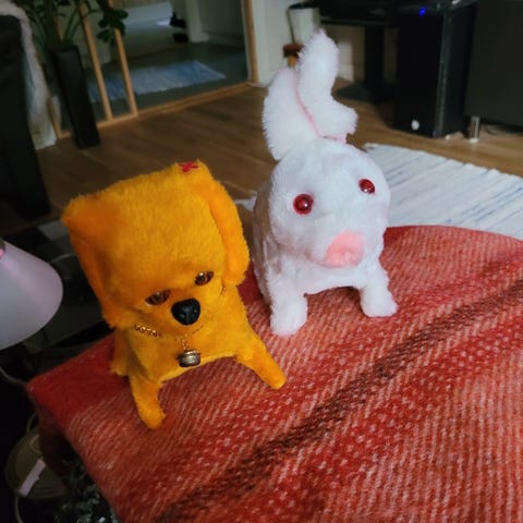Batteridrivna djur som rör sig o låter. 50kr/styck. Skickas ej, finns i centrala Falun.