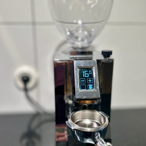 Eureka Mignon kaffekvarn i svart färg. Utrustad med behållare för kaffebönor och justerbar malningsinställning. Passar för malning av kaffebönor för espressobryggning och andra bryggmetoder.