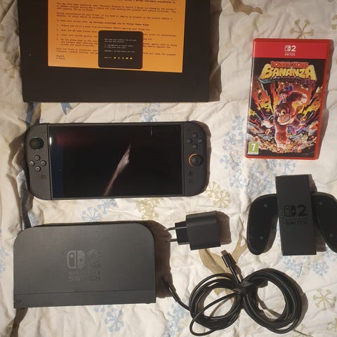 Nintendo Switch 2 spelkonsol med handkontroll. Inkluderar spelet en drös spel digitalt som är installerade på konsollen. Bland annat Mario Kart World, Metroid Prime 4, Donkey Kong Bananza, Star Wars Outlaws mm. Full tillgång.