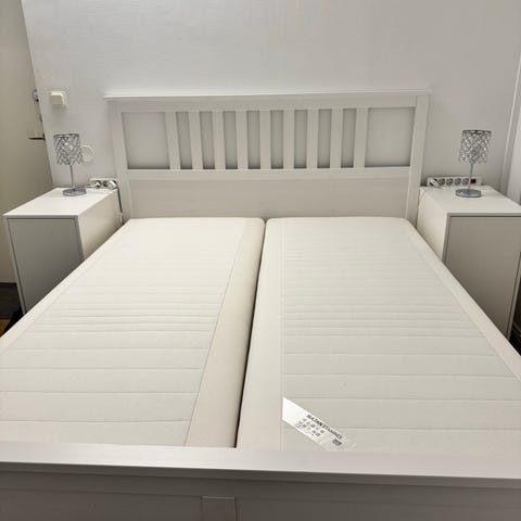 Sängram för 160 cm madrass eller 2 st 80 cm. Fint skick! 2 st madrasser i bredd 80 cm kan följa med om så önskas.