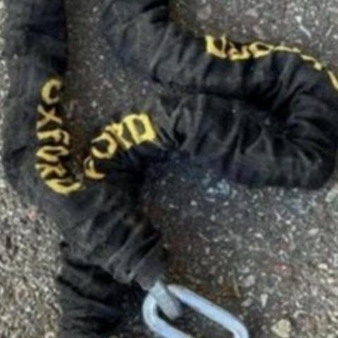 En lång säkerhet kedja märke av AXA på ( 132.cm ) vikt ca > ( 900. g )som kan säkrare din cykel eller andra saker med en bra kraftiga lås , kedjan i rost fritt stål material med skydd , enligt på bilder finns i Västerås .