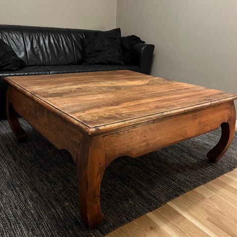 Soffbord/sällskaps bord med vackra smyckes utskärningar. Omgjord till en fin grön nyans som varierar lite beroende på ljuset som kommer på möbeln.