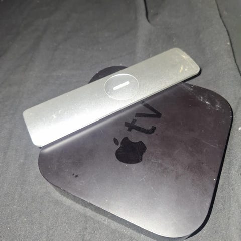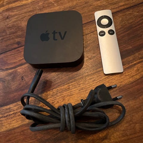 AppleTV, tredje generationen HD (1080p), modell A1427, programvara 7.9. Nätsladd och fjärrkontroll medföljer.