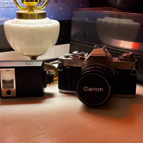 En ikonisk kamera från Canons mekaniska era, känd för sin robusta kvalite och pålitliga funktion. Perfekt för dig som vill fota analogt eller för samlare. Tillverkad i Japan. Band är original och är också i utmärkt skick.