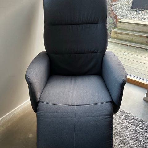 Vit fåtölj i gott skick. Avtagbar och tvättbar klädsel, ljust trä till fötterna. Mjuk dyna till som går att ta av och tvätta den med. Har katt och därav små klösmärken på hörnet längst ned, se bild. Syns ej på avstånd dock.