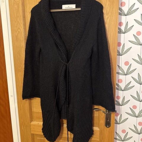 By Malene Birger kofta/ klänning i vacker vintergrön. Klänningen har knäppning framtill och lång ärm med mudd vid ärmslut. Materialet är tungt vilket ger ett snyggt fall. Enstaka tråddragning som inte syns. Ett otroligt designplagg.