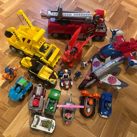 Set med Paw Patrol leksaksfigurer i olika karaktärer och färger. Passar för barn och samlare.6 hundar + ledarnänniska ingår