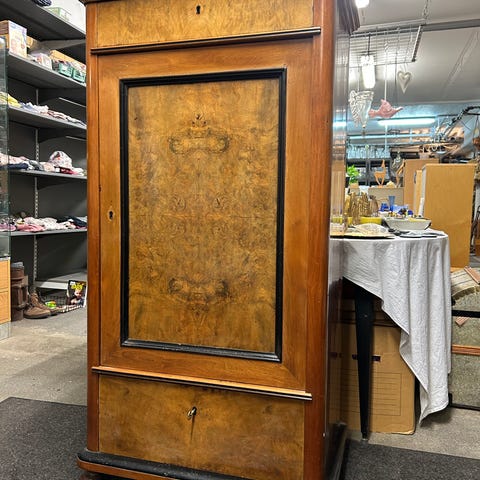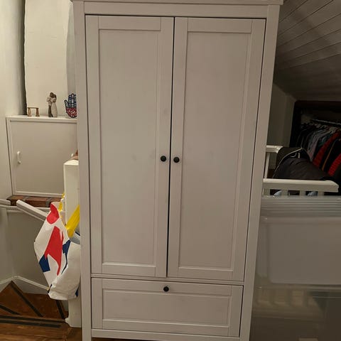 Sluttande tak gör klädskåpet mer lättstädat och skapar möjlighet att via komplettering anslutas till befintlig ventilation.