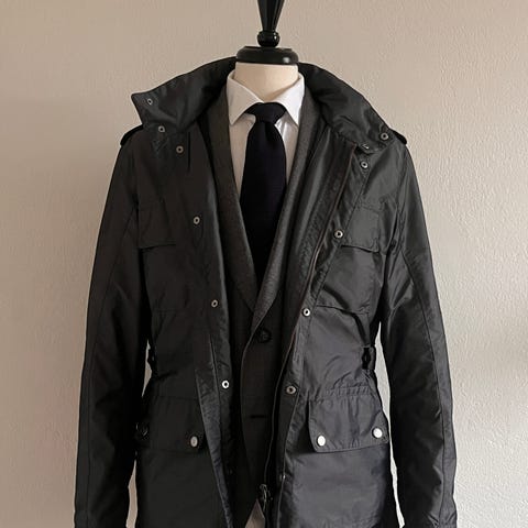 Elegant mörkblå Field Jacket från Gant i storlek large. Jackan har detaljer som axelklaffar och justerbar midja. Storleken är large och skulle beskriva den som true to size. Passa på att