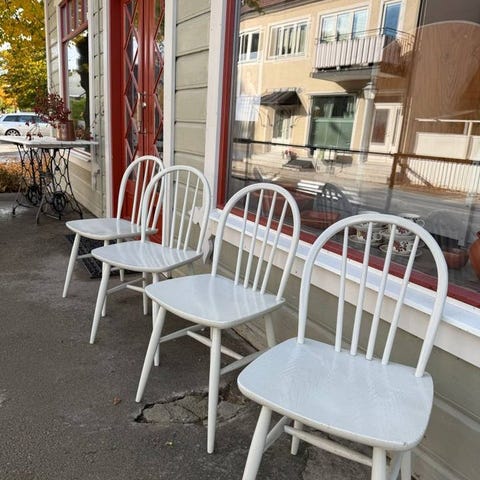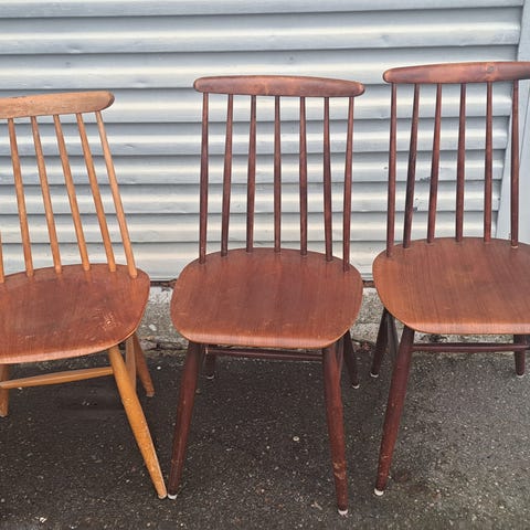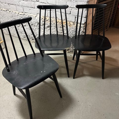 3stt pinnstolar i teak och på svart. Mycket lätta och stabila men behövs bara lite svart lack.kolla på bilderna