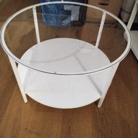 Svart soffbord, 75 cm i diameter. Har ett litet märke som syns i vissa ljus, se andra bilden.