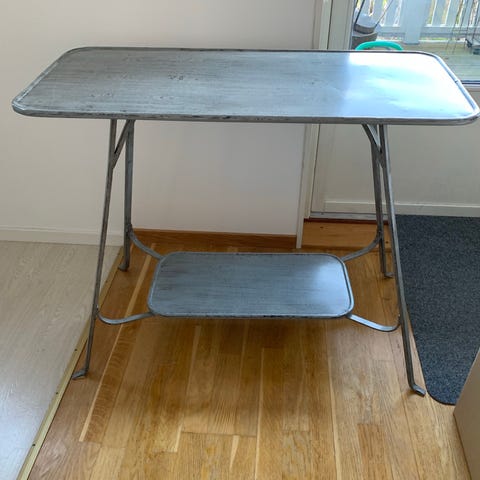Avlastningsbord från Woodenforge. Bredd 120 cm. Tillverkad av återvunnet massivt trä. Två lådor.