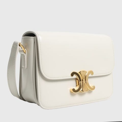 Teen Triomphe bag in shiny calfskin with an adjustable leather shoulder strap and a Triomphe clasp.