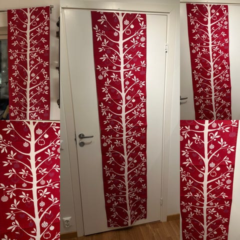 Säljer fina julgardiner i lite gammaldags stil ,beiga med tomte 🎅 broderi.Kappan och längder sitter ihop.