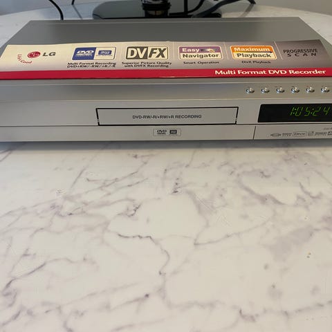 Panasonic DMR-E85 DVD Video Recorder med anslutningar för AV och SCART. Enheten har funktioner för inspelning och uppspelning av DVD-skivor samt anslutning till TV via flera portar.
