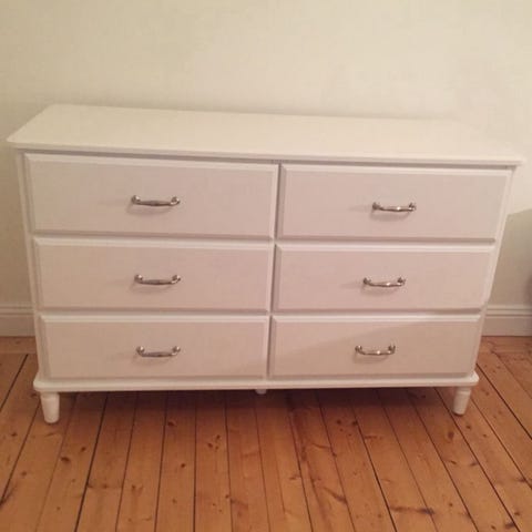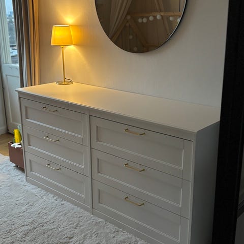 Säljer en exklusiv designbyrå i massiv trä, vitlackad med eleganta silverfärgade handtag och träbänk/skiva. Byrån är några år gammal men i mycket gott skick, väl omhändertagen och stabil – inget från IKEA eller Mio. Har dock ett litet märke vid den nedre lådan till V om den. Inget man tänker på men den ser man på bild