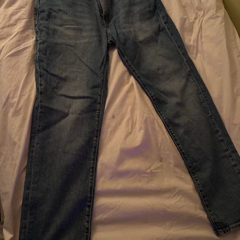 Levi's 502 jeans i blå färg tillverkade av denimmaterial. Storlek W31 och L34. Jeansens design inkluderar slitningar och en klassisk passform. Se bilder för skick.