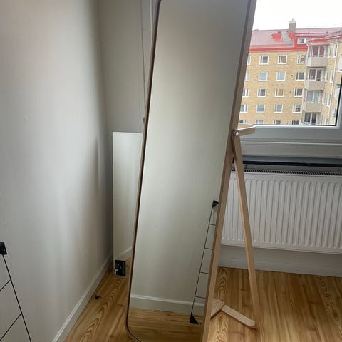 Nissedal spegel från Ikea. Spegeln är i bra skick, det enda som är värt att notera är två hål upptill där det har suttit en tavelbelysning.
