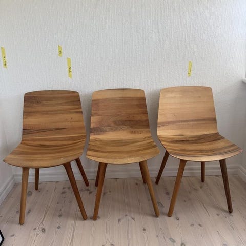 Hans K matbord och fyra stolar med fårskinnsdynor. Inköpt sent 2022, väldigt sparsamt använt och helt felfritt. Nypris för hela gruppen inklusive dynor 35 800 kr.