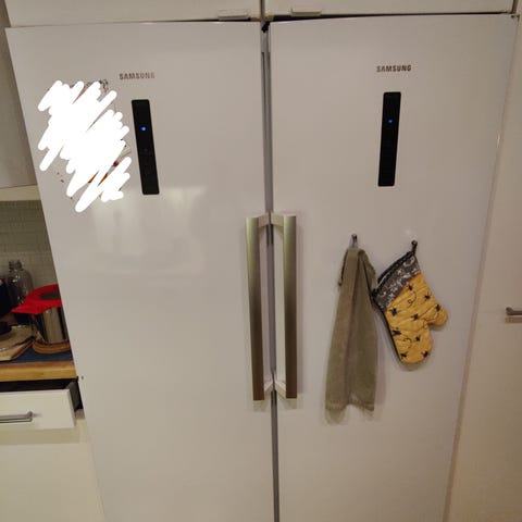 Electrolux frysskåp med flera genomskinliga lådor för förvaring av frysta varor. Vit färg och vertikal design med handtag på dörren för enkel åtkomst. Frostfri.