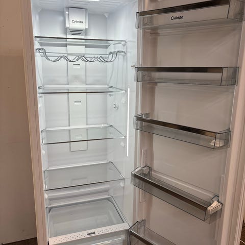 Beko kylskåp med flera hyllor och dörrfack för förvaring. Utformad för att hålla livsmedel kylda och organiserade.