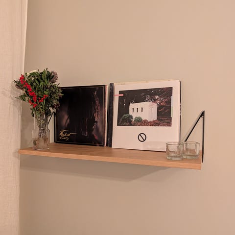 Säljes 3 st hyllor från maze i valnöt med tillhörande brackets i svart (6st). Hyllorna har måtten