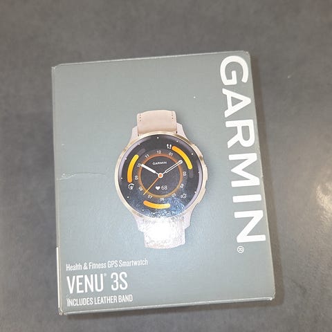 Komplett Garmin Venu GPS smart watch med originalkartong, bruksanvisning och laddare.