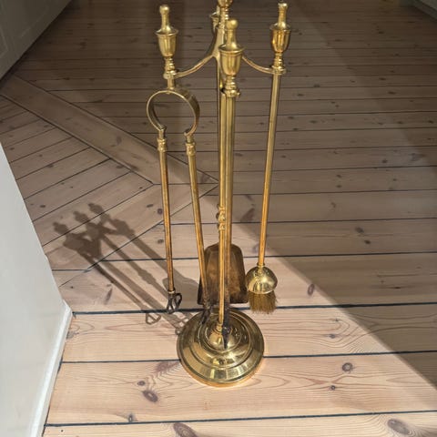 Svart eldstadsset i smide med tre verktyg. Svenskt smide,