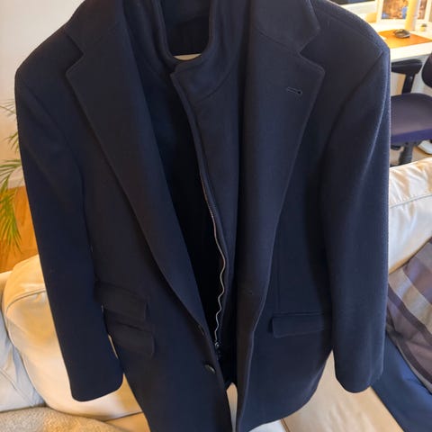 Snygg och sofistikerad rock i ullblandning. Kommer med dolda knappar framtill, med en avtagbar innerväst med dragkedja och en lätt vadderad design. Rocken har även två midjefickor, en innerficka med dragkedja, knappar vid ärmslut och en slits bak för bättre passform och rörelsefrihet.
