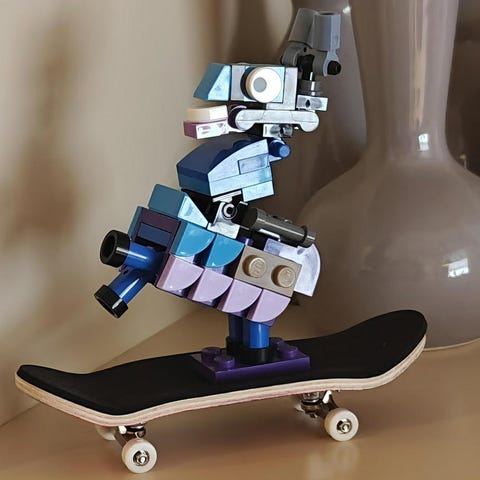 LEGO Fortnite 77073 byggsats med flera minifigurer och detaljerade delar. Setet inkluderar en blå buss med luftballong och tillbehör för samling och lek.