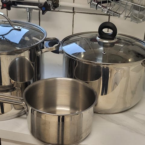 IKEA kastrull FAVORIT i rostfritt stål med tillhörande lock. Kastrullen har handtag på sidan och lock med ångventiler. Passar för allmän matlagning och kan användas på olika typer av spisar.