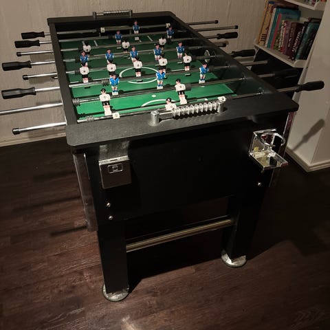 Hållbar konstruktion: Detta fotbollsspelbord är tillverkat av MDF och stål och är byggt för att uthärda intensiva matcher och spel, vilket garanterar långvarig njutning i många år framöver.