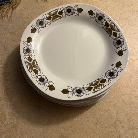 Använt men relativt gott skick. En av assietterna saknar en flisa i kanten (se bild 2).